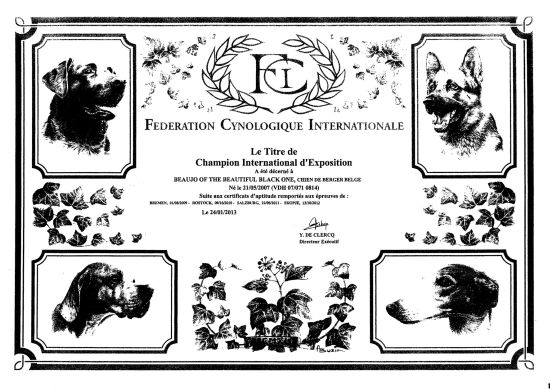 Nun ist es amtlich! Beaujo ist Internationaler Schönheitschampion!!!