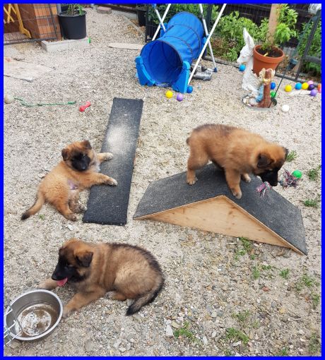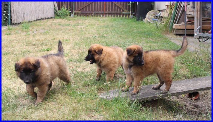 Die Welpen sind 7 Wochen alt, sehr aktiv, sportlich, erobern furchtlos jedes Spielzeug in ihrem Welpenkindergartern. Der Rüde Gobi, hier im Vordergrund, lebt jetzt bei Moni und Micha und seinem Papa Finn! Ich wünsche Euch alles Gute, freut mich riesig das der kleine Gobi bei Euch lebt. Ich bin sehr gespannt, wie er sich entwickelt, freu mich schon auf die erste Ausstellung!