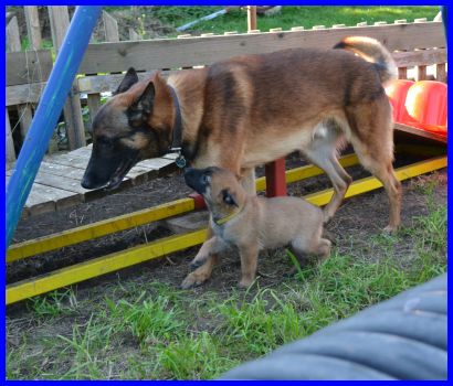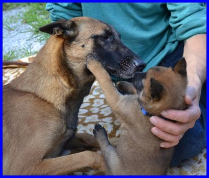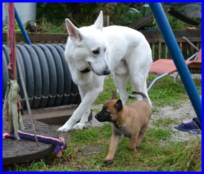 Am 06.10. 2015 waren Ralf, Kerstin, Julia und natürlich ihr Mali Gloria-Fine zu Besuch bei den Babys. Gloria ist aus dem G-Wurf, und da sie den gleichen Papa hat, sind sie wirklich Geschwister! Also kleine Akela, das ist Gloria, deine große Schwester! |
