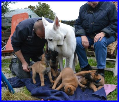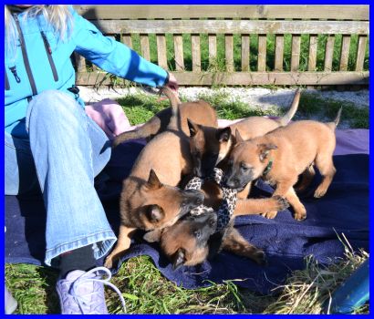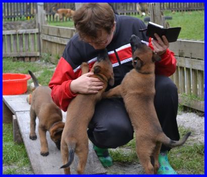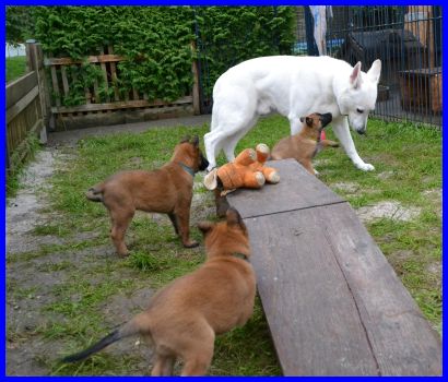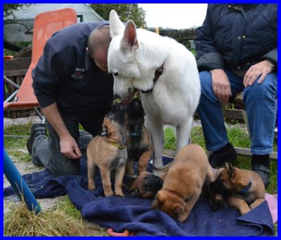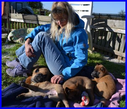 Am Samstag, den 24.10.2015 werden meine Babys acht Wochen alt. Die vier Rüden sind alle vergeben, das kleine Mädchen, meine Akela, darf zu Hause bleiben. Sie wird hoffentlich alle Voraussetzungen für die Zuchttauglichkeit erfüllen und als nächste Zuchthündin in meinem Zwinger ihre Mama Avanti ablösen. Die nachfolgenden Fotos sind ein Rückblick auf die letzten drei Wochen. Wir hatten fast täglich Besuch von lieben Freunden und zukünftigen Mali-Besitzern. Manche waren sogar zweimal da zum Babys knuddeln!