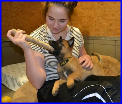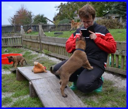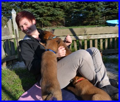 Am nächsten Tag, den 12.10.2015, war Diana zu Besuch. Auch Diana kommt fast jedes Mal meine Babys knuddeln, dieses Mal leider ohne Leena, ihre Tervuerenhündin. War trotzdem schön und die Babys waren begeistert, wieder jemand neues da mit dem man Spaß hatte. |