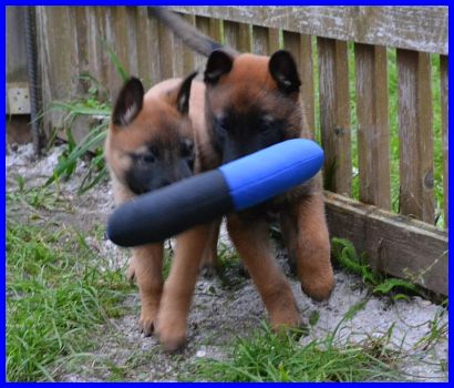 Perfekt koordiniert, Welpen Bespaßung von rechts und von links :-) |