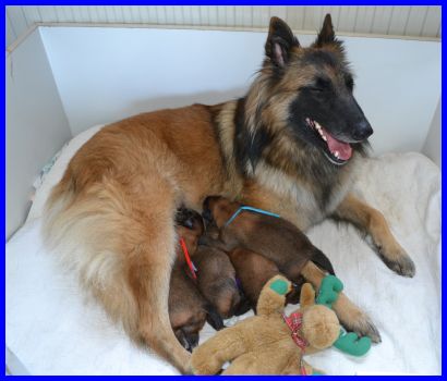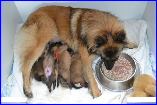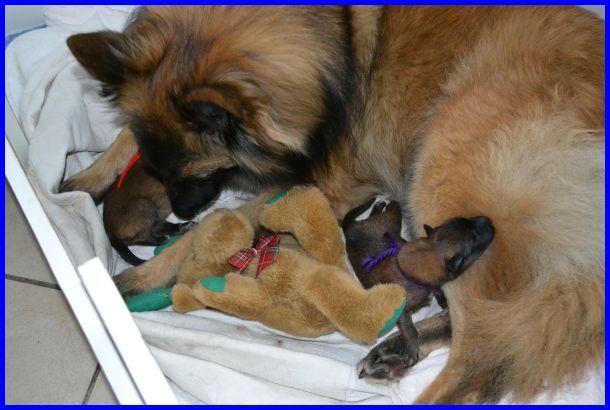 Farouche verbringt sehr viel Zeit mit den Welpen, ist genau so eine Übermutter wie ihre Mama Abigail!