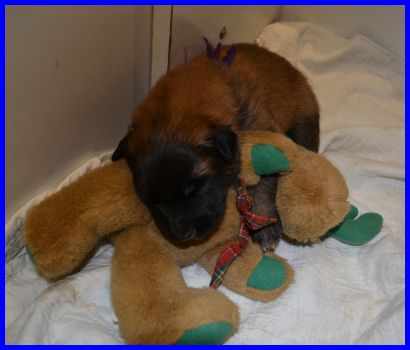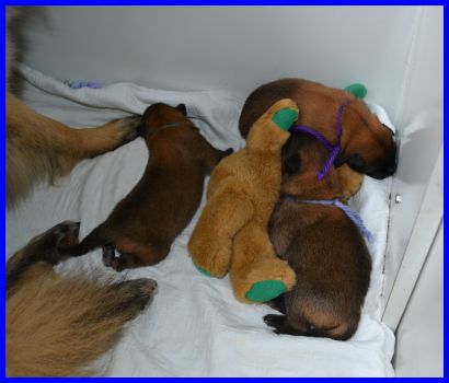 Und natürlich ist das Plüschi wieder mit bei den Welpen :-) |