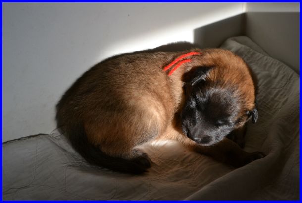 Müde! Es ist schon ganz schön anstrengend, doch die Welpen beginnen nun auch schon langsam sich selbstständig zu lösen! Die letzten Fotos sind vom 25.04.2016, die Welpen sind jetzt 14 Tage alt.
