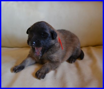 14 Tagen, die sie nun schon auf der Welt sind, enorm entwickelt. Aus blinden und tauben Saugwelpen haben sich kleine Hunde entwickelt, die langsam die ersten tapsigen Schritte versuchen. Einen riesen Schritt in der Entwicklung gab es vom 10. bis zum 14. Lebenstag der Welpen. Mit 9 Tagen sind die Welpen noch recht unbeholfen, die Augen und auch die Ohren sind noch geschlossen, die kleine Welt besteht zum größten Teil immer noch aus trinken und schlafen. Schon zwei Tage später versuchen die Babys sich aufzusetzen, auch wenn es nur ganz kurz und ziemlich wakelig ist. Mit 14 Tagen sind bei allen Welpen die Augen geöffnet, sie nehmen eindeutig Schatten wahr, reagieren auf Bewegungen vor ihren Augen. Sie versuchen die ersten richtigen Schritte, fallen natürlich nach zwei bis drei Schritten auf die kleinen Nasen, aber sie versuchen ihr Glück immer wieder aufs Neue! Die Babys untersuchen schon recht neugierig ihre Geschwister, versuchen mit dem kleinen Mäulchen einander festzuhalten. Ab und zu kann man schon kleine Knurrlaute aus der Wurfkiste hören! Sie sind jetzt auch in der Lage sich selbstständig zu lösen.