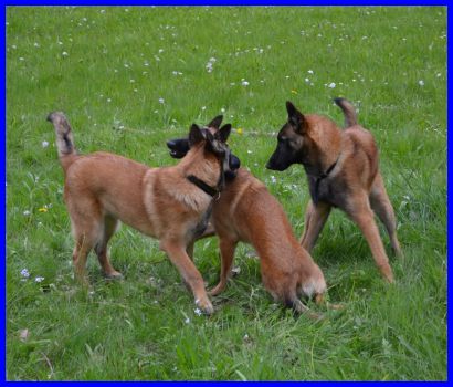 Nach der Ausstellung haben Hadés, Woody und meine vier Mali BBO´s auf der Wiese neben dem Ausstellungsgelände richtig schön gespielt, hier sind ein paar schöne Bilder von den Jungspunden. Akela ist der einzigste Hund, der kein Halsband trägt. Ist darum relativ leicht zu erkennen. Itchy und Isaak sind etwas intensiver in der Farbe, Akela und Khenan sind etwas heller. So kann man sie ein wenig auseinander halten.