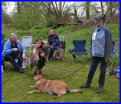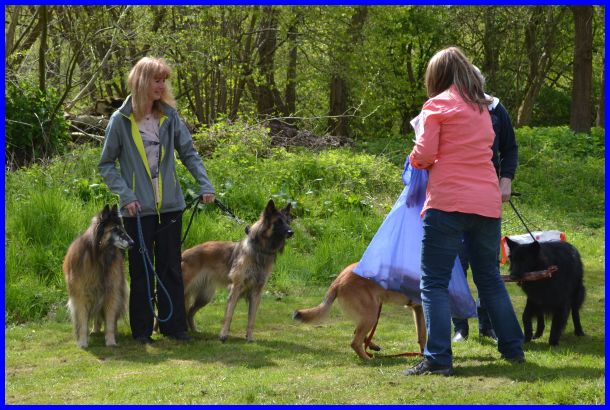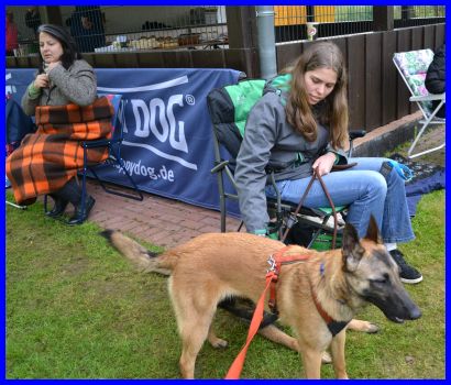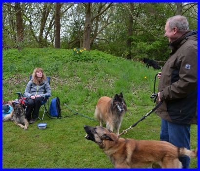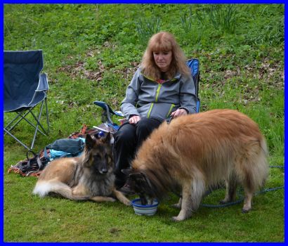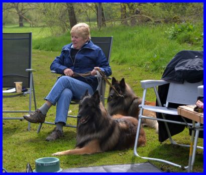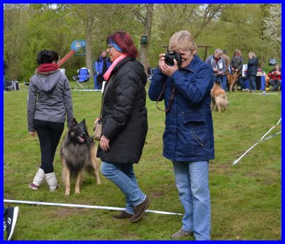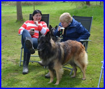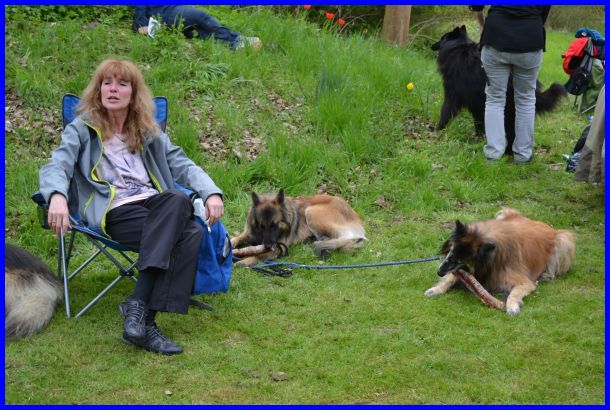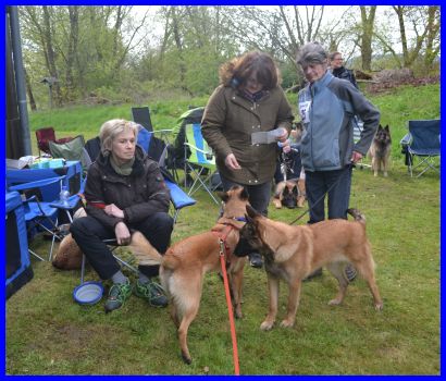 Sandra und Moni fachsimpeln :-) die Tervueren Rüden, vorn Danger dann Vito und hinten Canis, stehen im Ring!