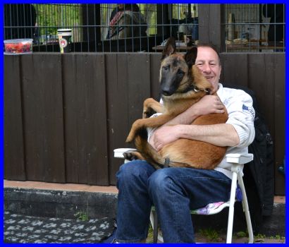 Pudel Teenie Nadja musste natürlich auf meinen Schoß, das machen ja die Belgier genauso, und Nadja denkt auch, sie ist ein Belgier! Alle strahlen IHRE Hunde an, ist das nicht ein tolles Bild???