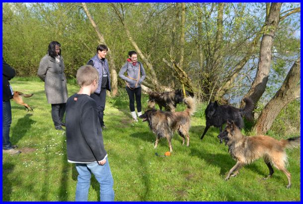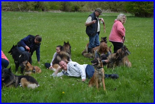 Super, wie die Jungspunde Khenan, Itchy, Isaak, Kirk und Akela schon mitgemacht haben! Auch wie die Erwachsenen Hunde so eng und dennoch entspannt neben einander liegen, die BBO´s sind schon eine tolle Truppe!