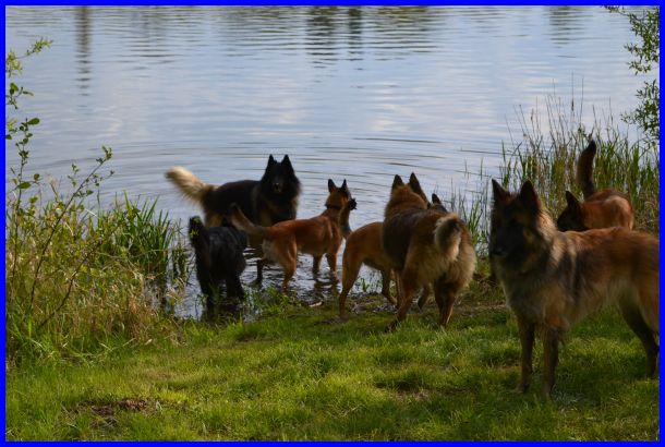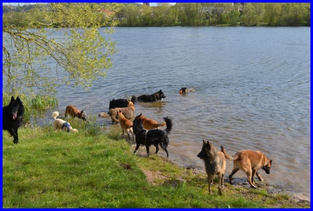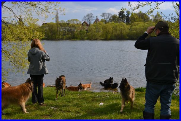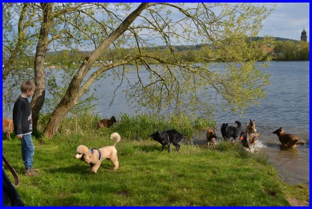 Nachdem alle ausgestellt waren, haben wir noch einen kurzen Spaziergang zum See gemacht. Es war ziemlich warm geworden und die Hunde sollten sich abkühlen und natürlich mega Spaß haben.