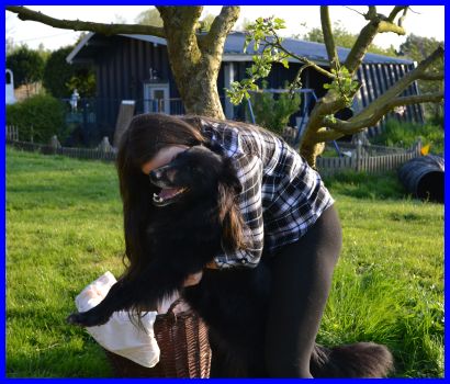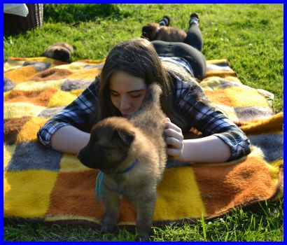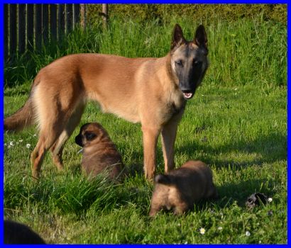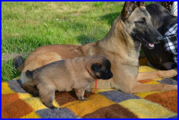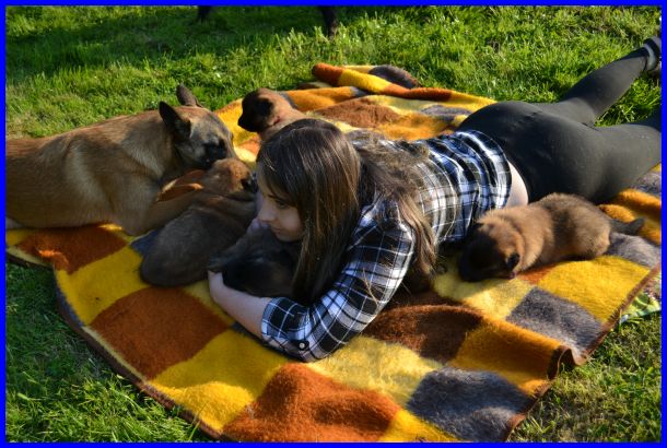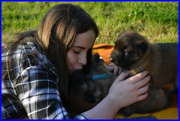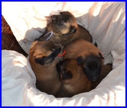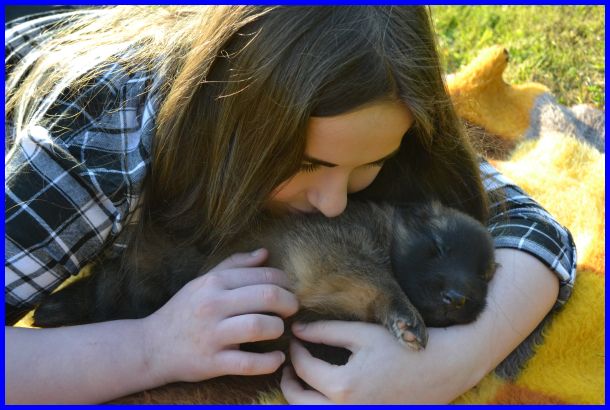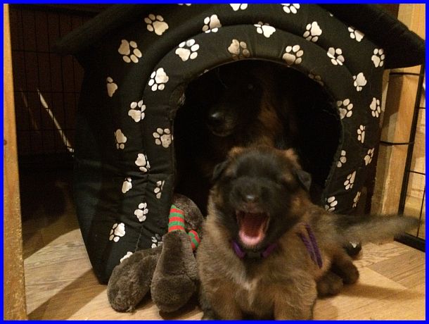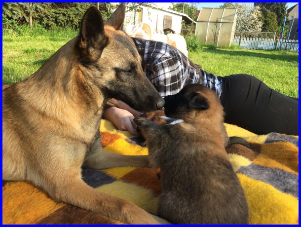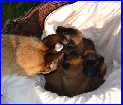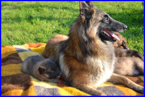 Glückliche Akela, jetzt darf sie mit den Babys kuscheln, Farouche erlaubt es ihr auch, aber nur solange wir Menschen dabei sind!