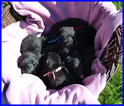 Zurück im Welpenzimmer gibts in der Wurfkiste eine Riesenportion Milch. YooPee ist zufrieden, ihre Babys sind wieder da, wo sie eigentlich hingehören, in ihrer Wurfkiste!