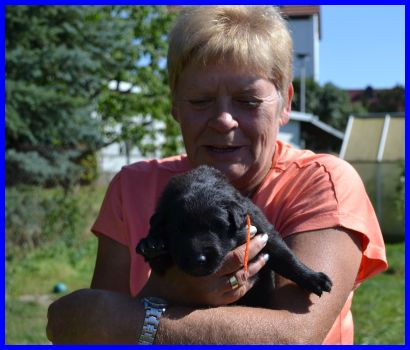 Frl. Orange ist immer noch der schwerste Welpe, wird sie sicherlich auch bleiben!