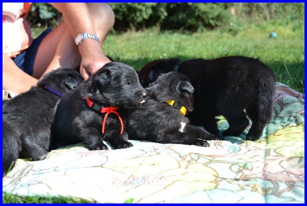 Am 18.08.2016 waren die Welpen das erste Mal im Garten, da waren sie genau drei Wochen alt. Sie wachsen und gedeihen prächtig und waren von der neu gewonnenen Freiheit total begeistert. Moni und Micha mit ihren beiden Tervuerenrüden Don Vito und Finn waren eine Woche bei uns zu Besuch und haben die Welpen auf ihrem ersten Freigang begleitet. Natürlich durften Vito und Finn noch nicht zu den Welpen, das hat YooPee eindeutig gesagt, aber die Zwei durften sich frei im Garten bewegen und mit den anderen spielen, das war für YooPee vollkommen in Ordnung. Vanessa war auch da und hat sich sehr liebevoll um jeden einzelnen gekümmert. Am Abend waren sie dann von den neuen Eindrücken total geschafft und haben tief und fest geschlafen, mit sehr lebhaften Träumen!