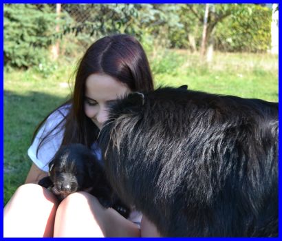 Vanessa ist da und kuschelt mit den Babys, YooPee möchte viel lieber mit Vanessa Ball spielen.