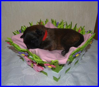 Leider haben die Babys ihr zweites Fotoshooting total verschlafen, aber mit sieben Tagen darf man das auch. Nur Frl. Rot wollte unbedingt die Welt außerhalb des Körbchens erkunden, sie will sicherlich mal ein richtiger Sporthund werden!