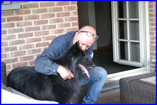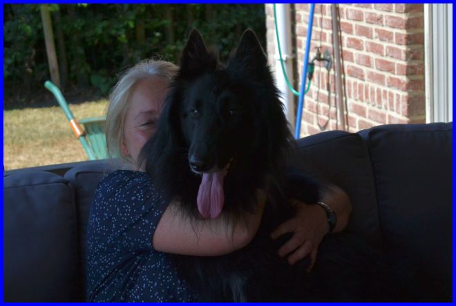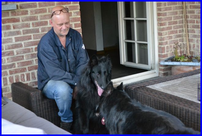 Er lebt mit seiner Familie und vier weiteren belgischen Schäferhunden als normaler Familienhund, da muss natürlich auch ein richtiges Familienbild gemacht werden. Patrick bemüht sich und Peggy überwacht das ganz genau, perfekte Arbeitsaufteilung :-)