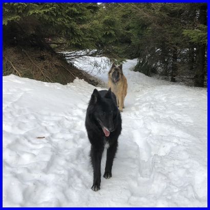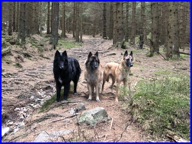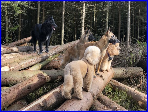 Hier ein Bild mit den verrottenden Bäumen und natürlich unseren Hunden!