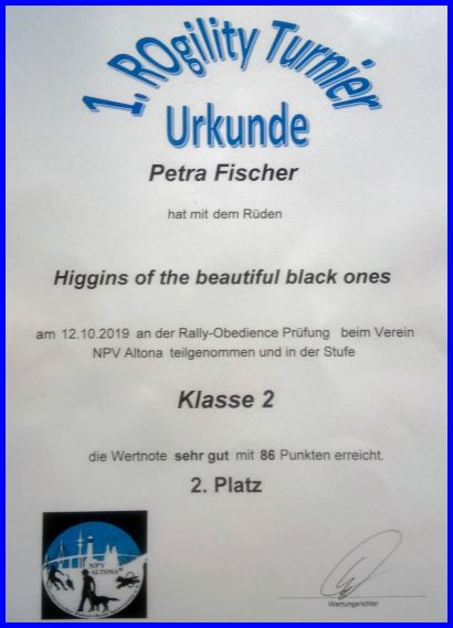 Petra trainiert mit ihren Hunden im Rally Obedience und Hoopers, einer ganz jungen Sportart. Hoopers ist ähnlich wie Agility, nur ganz ohne Sprünge, die Hunde laufen durch die Hoops. Odin und Caruso sind die ersten Hunde die Petra im Sport führt, mit ihnen hat sie die ersten Schritte im Sport getan und alles gemeinsam gelernt. Mittlerweile ist Petra selber Hundetrainer und läuft sehr erfolgreich mit beiden Rüden auf Turnieren. Leider habe ich ganz wenige Fotos, mehr Videos, die aber super toll sind. Danke dafür, Petra, ich bin sehr stolz auf Euch!!!