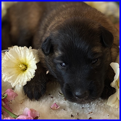 Die Welpen sind zwei Wochen alt, und natürlich gibt es wieder Einzelaufnahmen. Die Fotos sind vom 11.04.2022. Die Fotos zeigen die Babys in der Reihenfolge ihrer Geburt. Es war ein sehr interessantes Fotoshooting, jeder Welpe hat anders auf die neuen Gerüche, die Düfte der verschiedenen Blumen, reagiert. Es war total niedlich anzusehen, der eine wollte am liebsten kosten, der nächste rümpfte das kleine Näschen und wollte wegkriechen, und einer hat sich in den Blumen geräkelt... zuckersüß! Ich finde, die Bilder sind richtig schön geworden. Viel Spaß beim Ansehen der Bilder. Drei Rüden suchen noch "IHRE" Familie.