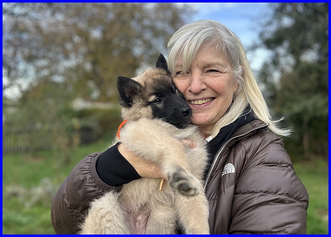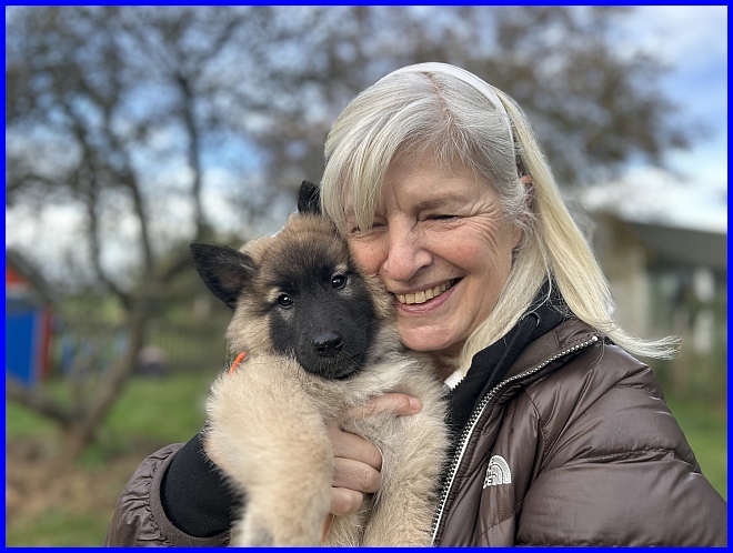 Am 01.11.2023 war meine liebe Freundin Marion zu Besuch und hat mit mir die Fotos vom 8 Wochen Portrait gemacht. Diese Fotos sind immer ohne Deko, ich möchte Fotos von den Köpfen und den Körpern. Dennoch hatten wir jede Menge Spaß, denn Welpen wollen nun mal nicht posieren, da muss man sich für jeden Welpen was neues einfallen lassen und eine Riesenportion Geduld mitbringen.Danke, liebe Marion, für Deinen Besuch und die Hilfe beim Fotoshooting.
