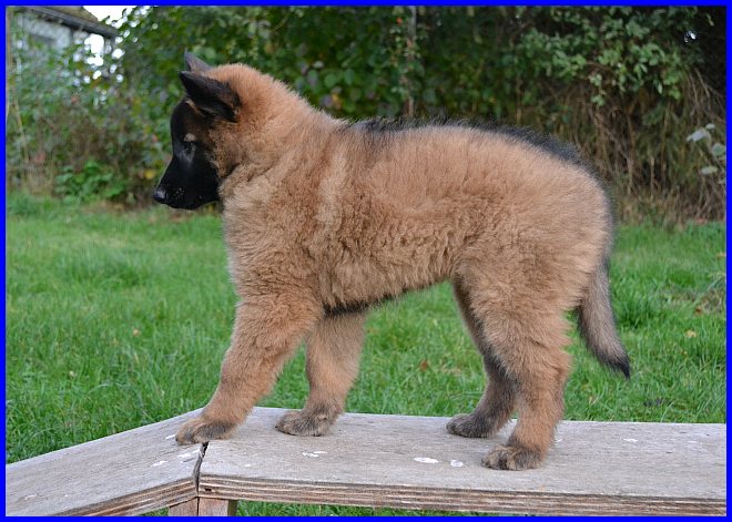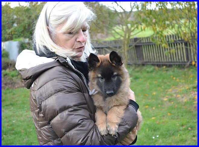 Inzwischen sind alle Welpen ausgezogen, Tiara, mein Frl. Lila, ist zu Hause geblieben und mit ihr werde ich vielleicht meine Tervueren Zucht wieder neu beginnen. Die Entscheidung ist mir sehr schwer gefallen, Tiffany, mein Frl. Blau, wollte auch zu Hause bleiben, doch noch zwei Hunde behalten... das ging leider wirklich nicht. Ich wünsche allen meinen Babys ein wunderschönes, glückliches, aktives und vor allen Dingen gesundes Leben mit ihren neuen Familien. Das Welpenkäufer Portrait werde ich in den nächsten Tagen fertig machen.