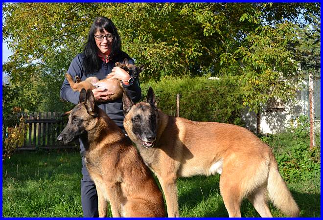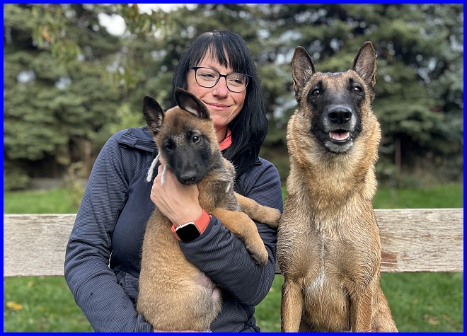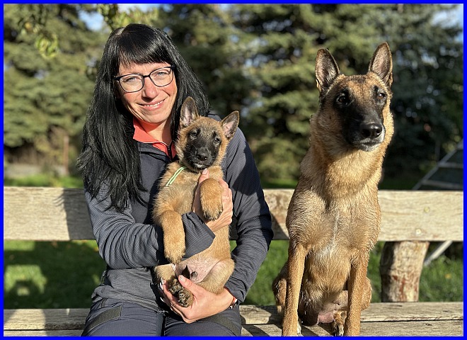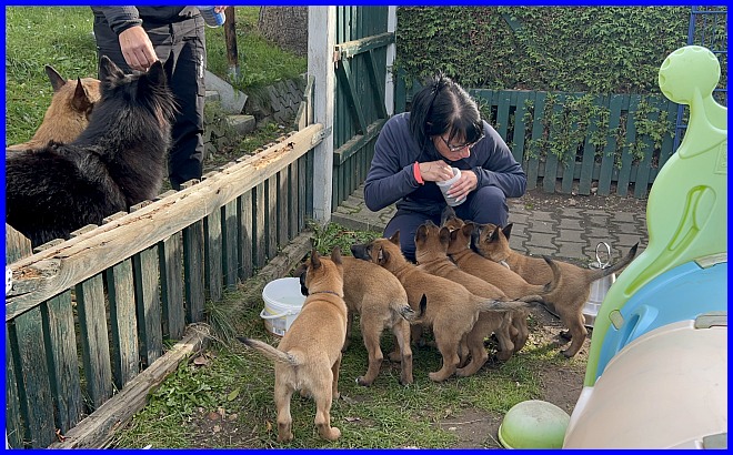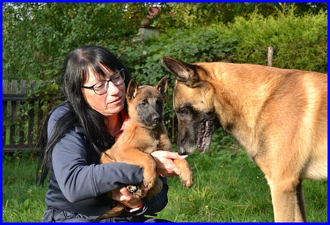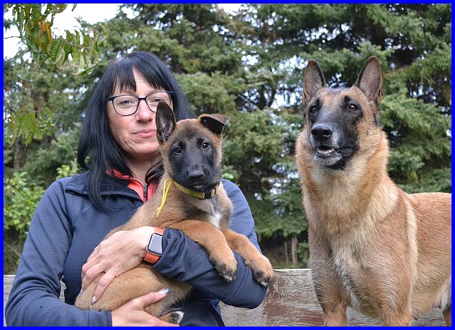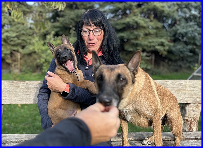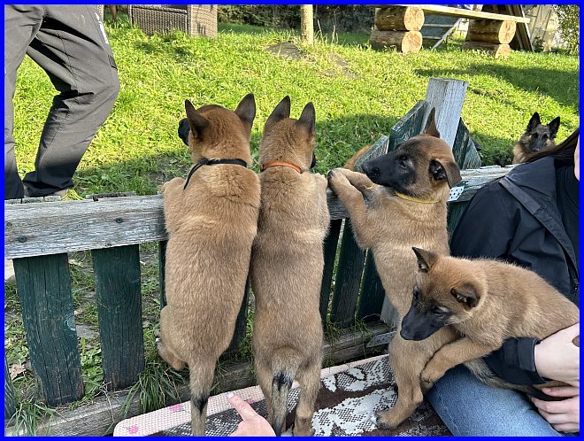 Am 14.10.2024 waren Birgit, André und Adina bei uns zu Besuch, wollten eigentlich nur Welpen knuddeln kommen :-) und dann kam alles ganz anders! Sie haben mit mir die Fotos vom 8 Wochen Portrait gemacht, sind spontan als Gehilfen eingesprungen. Danke, das war total lieb von Euch!!! Natürlich hatten sie ihre beiden Mali Rüden, Quintus of the BBO und Sasa the star of the BBO, mit, die auch auf einigen Fotos zu sehen sind. Wie bei jedem Wurf sind diese Fotos immer ohne Deko, ich möchte Fotos von den Köpfen und den Körpern. Dennoch hatten wir jede Menge Spaß, denn Welpen wollen nun mal nicht posieren, da muss man sich für jeden Welpen was neues einfallen lassen und eine Riesenportion Geduld mitbringen. Danke, Ihr Lieben, für Euren Besuch und die Hilfe beim Fotoshooting.