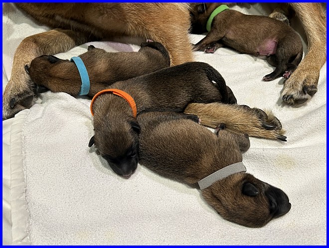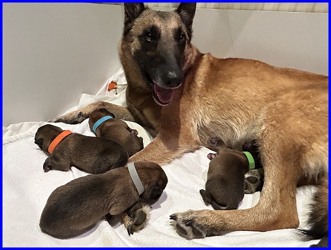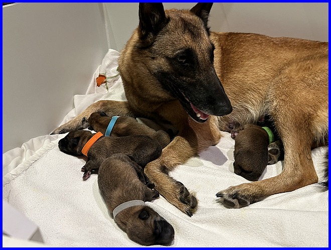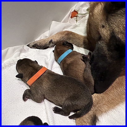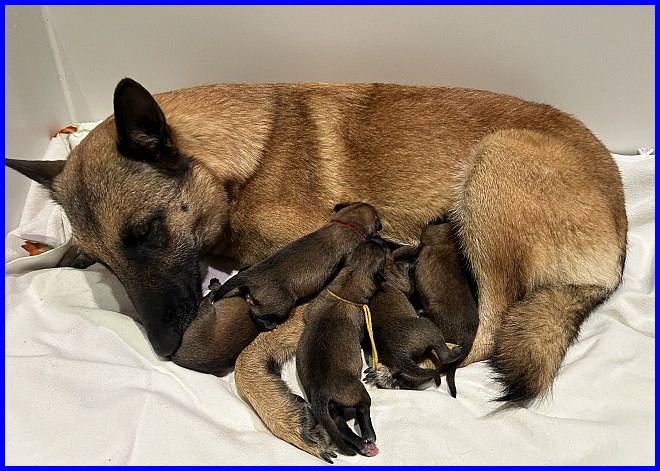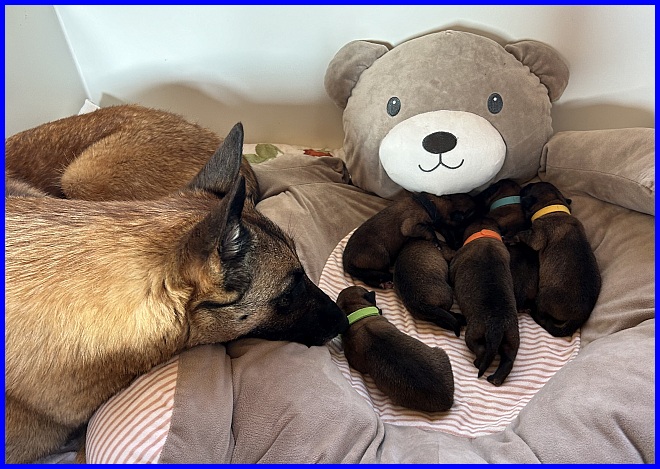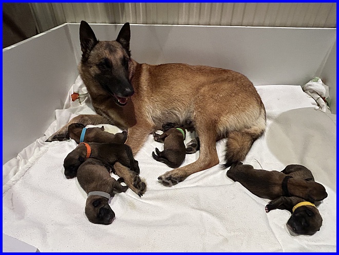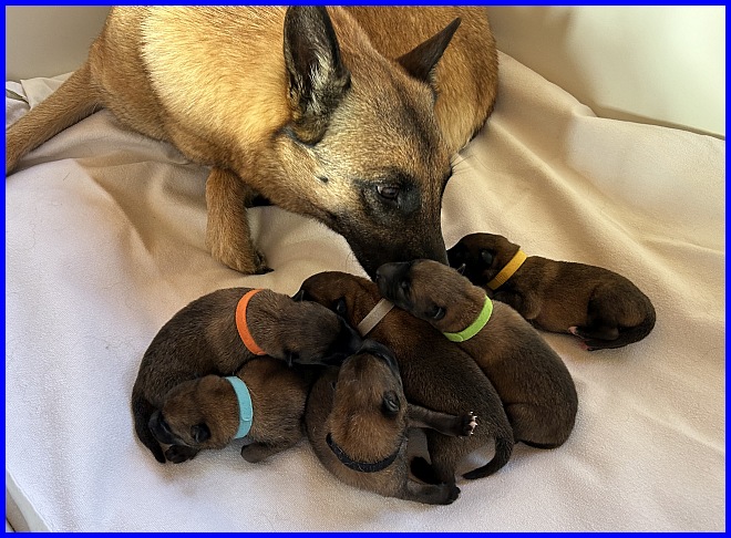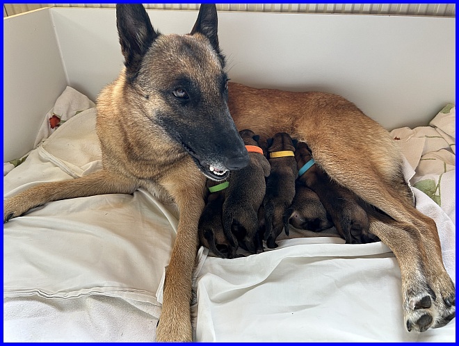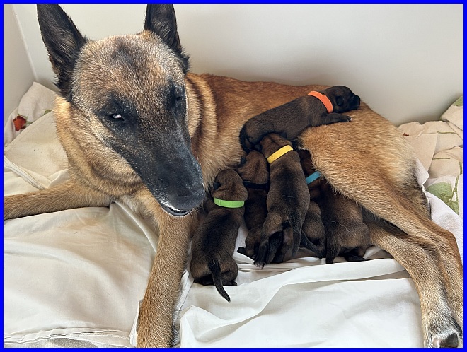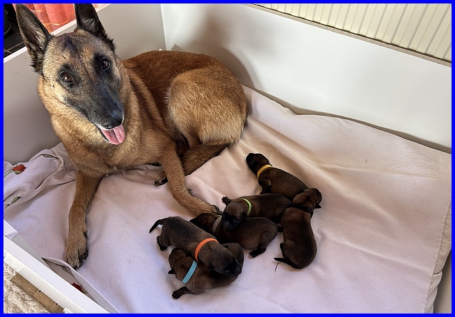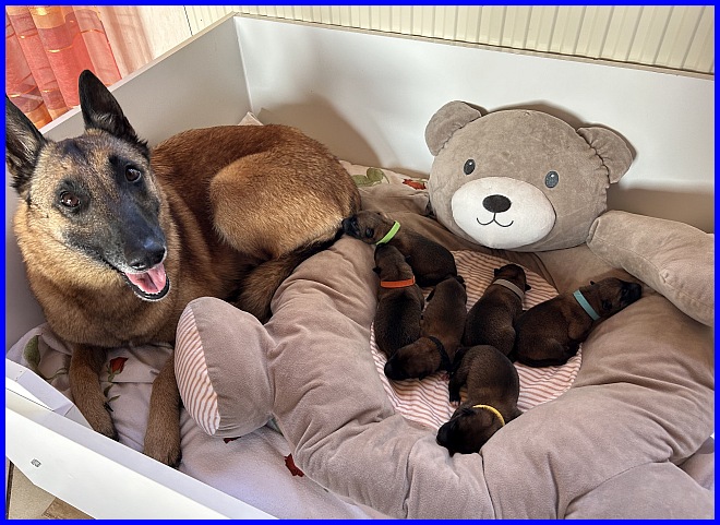 Am 21.08.2024 setzten die Wehen ein und die Geburt meines U-Wurfes begann. Am 22.08.2024 um genau 0:02 Uhr kam der erste Welpe zur Welt. In genau zwei Stunden und 40 Minuten brachte Quintana sechs Welpen zur Welt. Es sind ALLES Rüden, kein einziges Mädchen ist dabei, unglaublich!!! Und darum ist das der U-unglaubliche Wurf :-)