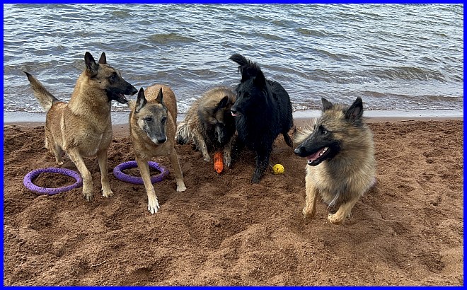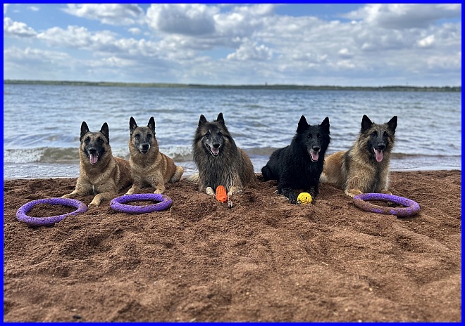 Dieser Sommer war bzw. ist richtig heiß, wir waren nicht mehr spazieren, wir sind nur noch schwimmen gegangen. Meine Mädels und ein Hund, den wir am See getroffen haben. Leider habe ich nur Videos gemacht, kein einziges Foto. Quintana liegt in der Mitte, zwischen meiner Gönihündin Viktoria und ihre Mama Malidame Akela.