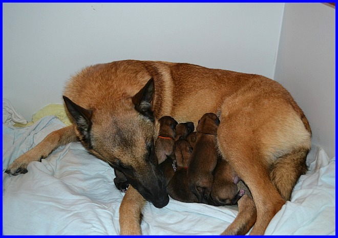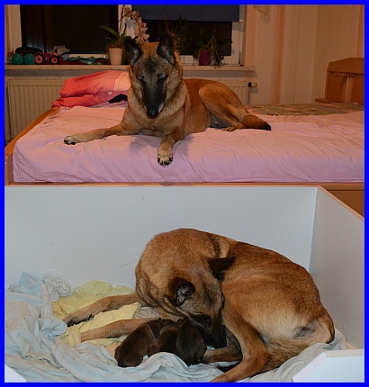 Ein wenig kann man den Bauch erkennen, ich hätte nie gedacht, dass Quintana sechs Welpen bekommt. Zugenommen hat sie gerade mal 4kg, ich habe mit höchstens 5 Welpen gerechnet.