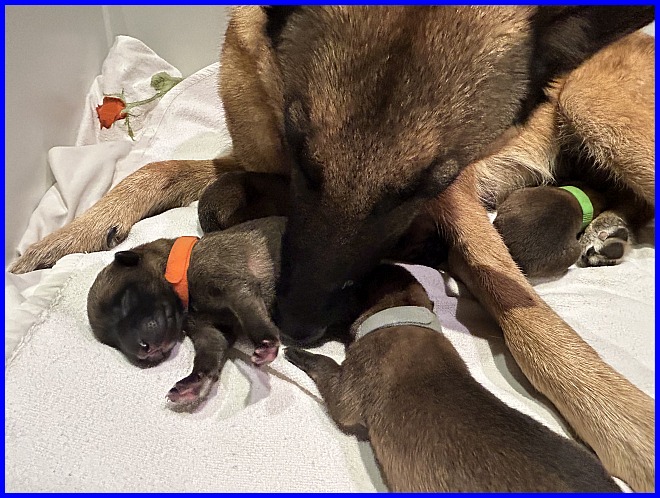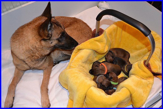 Es ist schon der 49. Tag der Trächtigkeit, 10 Tage später waren die Welpen schon da. Auch hier haben wir leider nur diese Gruppenfotos gemacht, ganz viele Videos, aber die kann ich leider hier nicht zeigen.