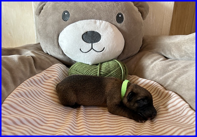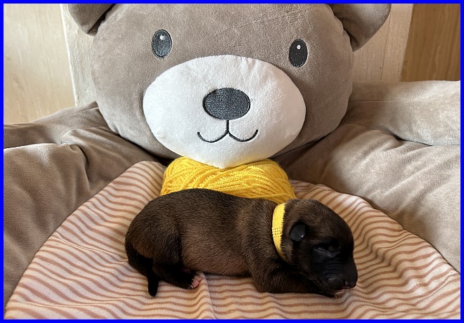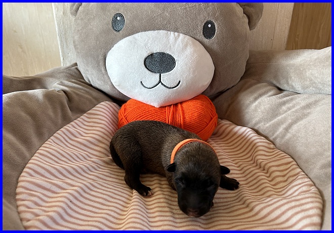 Und wieder ein Rüde, wo bleiben nur die Mädels?? Er ist der Schwerste Welpe :-)