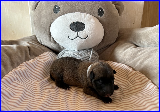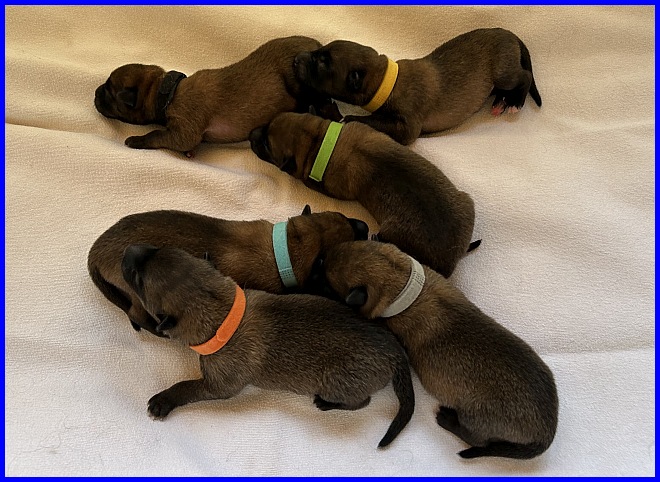 Die sechs Buben sind gesunde und putzmuntere Welpen, es ist eine Freude zu sehen, wie gut sie sich entwickeln. Sie sind heute schon 10 Tage alt, hatten am 7.Tag alle ihr Geburtsgwicht schon verdoppelt. Die Geburt war am 59.Tag der Trächtigkeit, Quintana und den Babys geht es sehr gut, die kleinen "Unglaublichen" entwickeln sich prächtig, hatten schon am ersten Tag zugenommen. Alle Rüden sind schon vergeben.