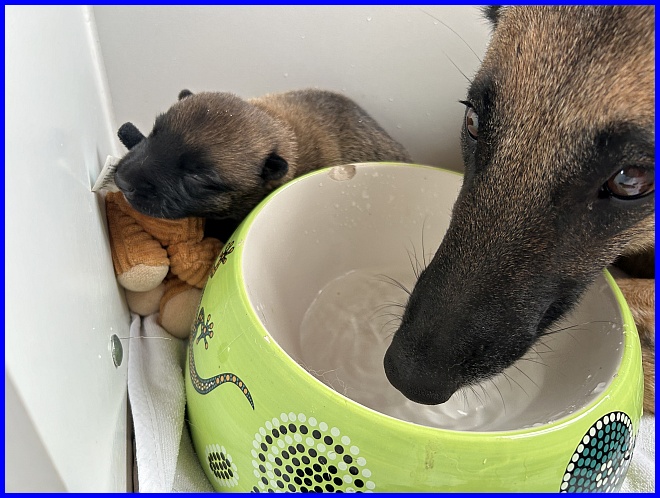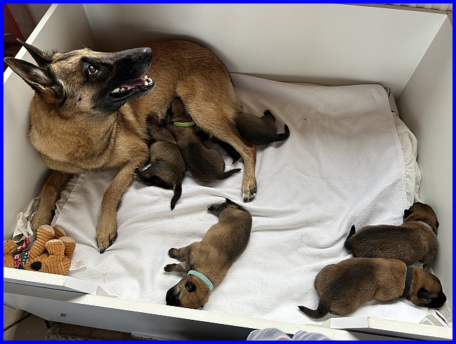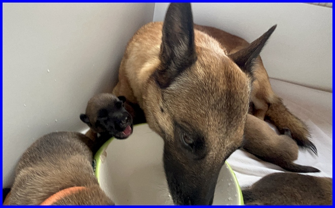 Oh ja, jetzt nutzt Akela jede Minute zum schnüffeln und putzen und knutschen IHRER Babys :-)