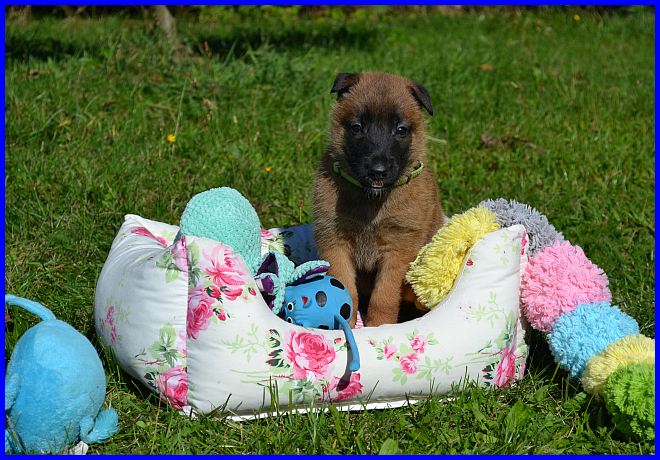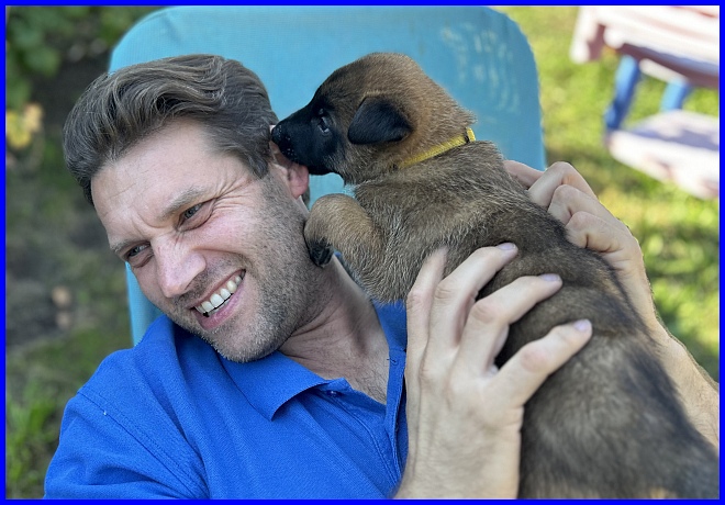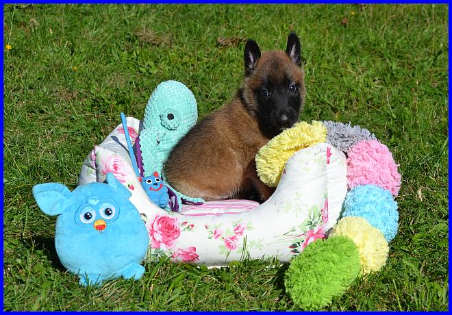 Ich bin ein bisschen spät, die Welpen sind inzwischen schon sechs Wochen alt, aber alle Aufnahmen zeigen die Welpen mit vier Wochen, sind vom 22.09.2024. Die Fotos zeigen die Babys in der Reihenfolge ihrer Geburt. Für mich war es dieses Mal ein sehr entspanntes Fotoshooting, ich hatte einen guten Gehilfen, der die Babys immer wieder an den richtigen Platz gebracht hat :-) Welpen wollen keine Shootingstars sein "grins", haben alles andere im Kopf, wollen ihre Welt erobern oder lieber zu mir laufen :-) aber nicht fürs Foto posieren. Die Bilder sind richtig schön geworden, danke Christian und Sandra für Eure Hilfe, es war zwar anstrengend, aber auch sehr lustig. Alles was ich zu den Welpen schreibe sind Moment Aufnahmen, jeden Tag verändern sie sich, wer heute sensibel ist - ist morgen schon ein kleiner Raufer! Viel Spaß beim Ansehen der Bilder.
