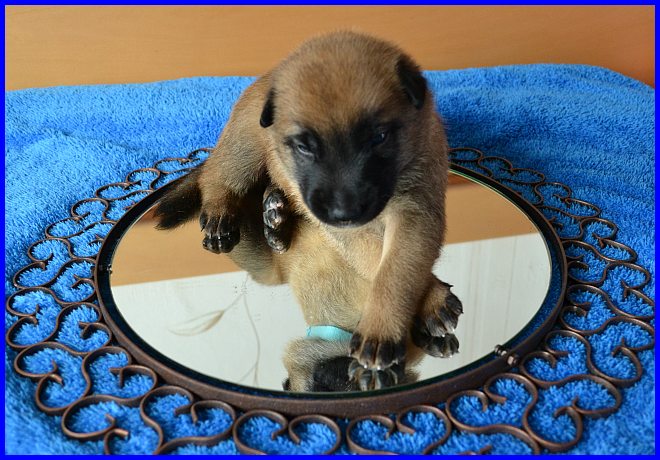 Die Welpen sind 18 Tage alt, natürlich gibt es wieder Einzelaufnahmen. Die Fotos sind vom 09.09.2024. Eigentlich wollte ich die Fotos pünktlich zum "zwei Wochen Geburtstag" machen, es wurde vier Tage später, aber das macht in diesem Alter sehr viel aus. Die Babys sind schon relativ aktiv und groß, passen kaum noch auf meinen Spiegel. Die Fotos zeigen die Babys in der Reihenfolge ihrer Geburt. Es war ein sehr interessantes Fotoshooting, mein Fokus lag auf der Spiegelung. Doch dafür sollten die Babys tatsächlich mal ruhig liegen bleiben, vier Tage früher wäre es gar kein Problem gewesen, nun war es doch nicht so einfach, wie ich es mir vorgestellt hatte. Ich finde, die Bilder sind richtig schön geworden. Viel Spaß beim Ansehen.