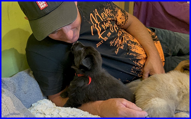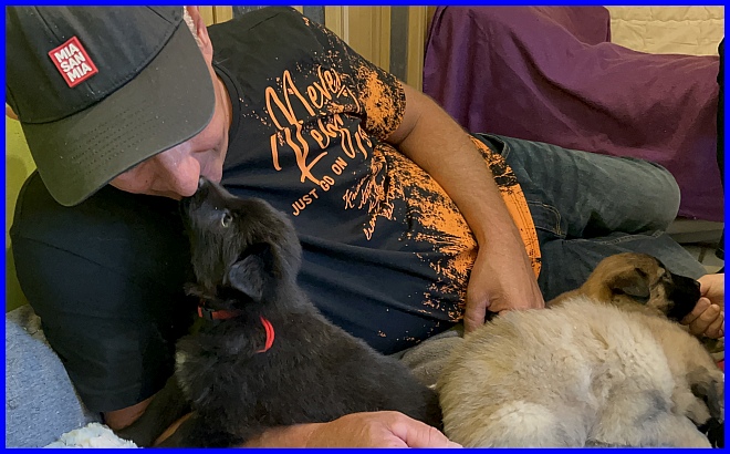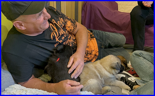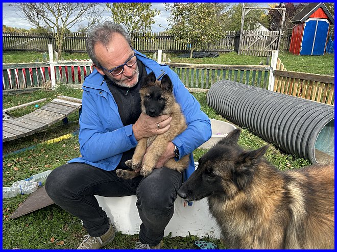 Der erste Besuch bei den Welpen war am 07.10.2023, und die kleine Tamina hat sich sofort in Thomas verliebt. Wir kennen uns ja schon viele Jahre, Thomas und Andrea besitzen noch Miss Monique of the BBO.