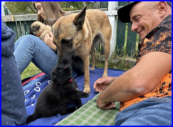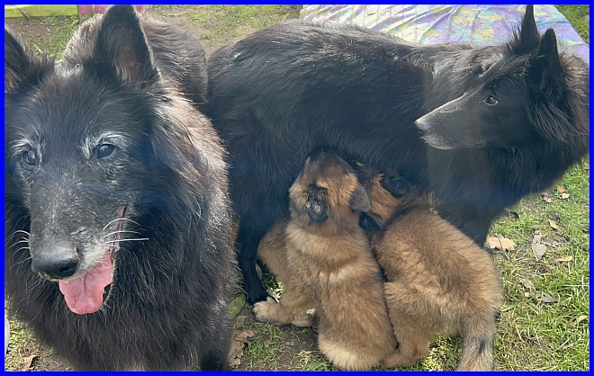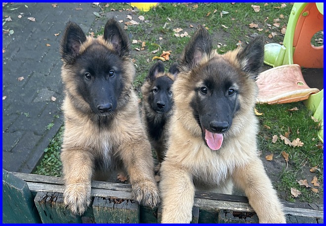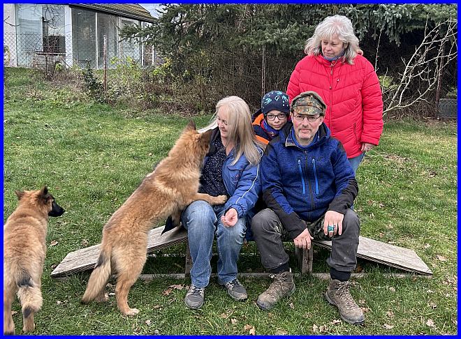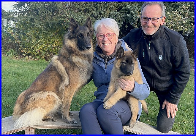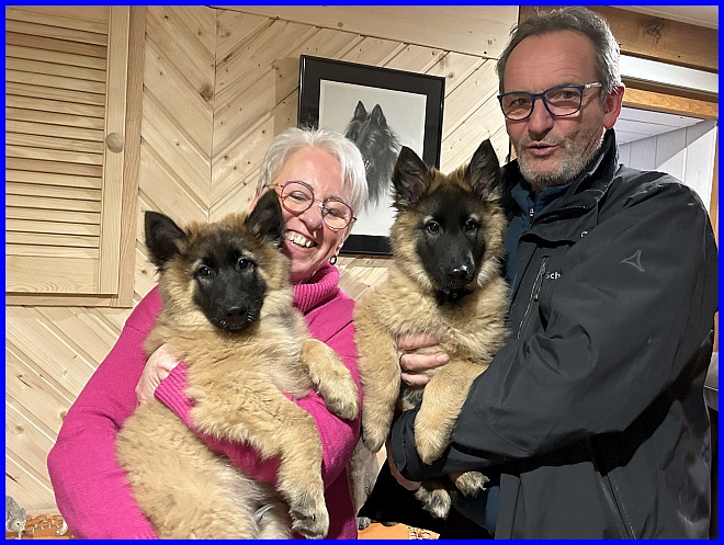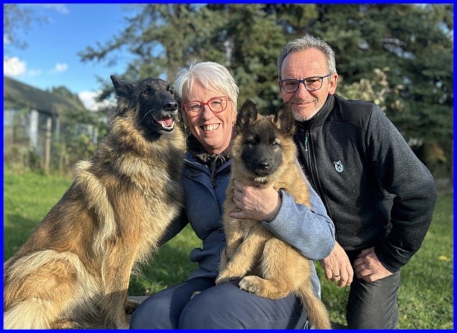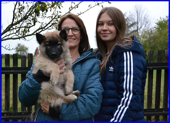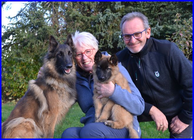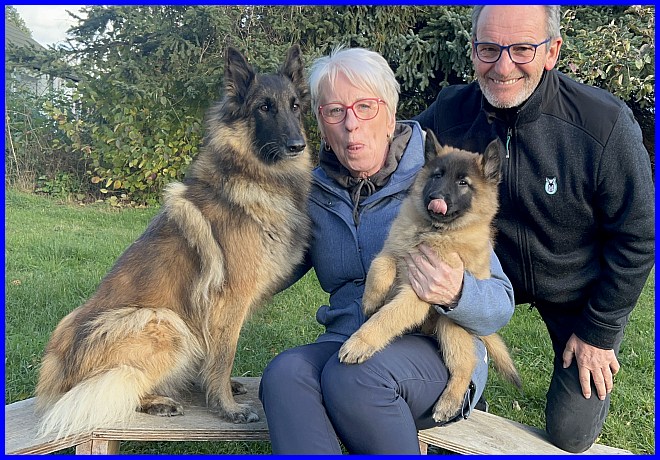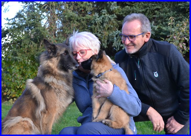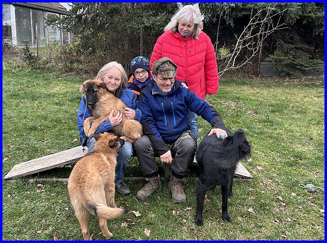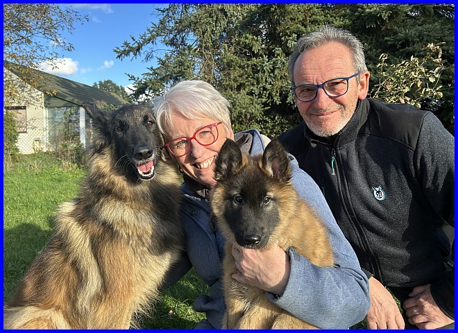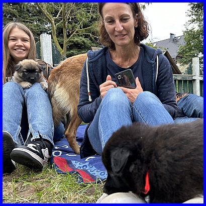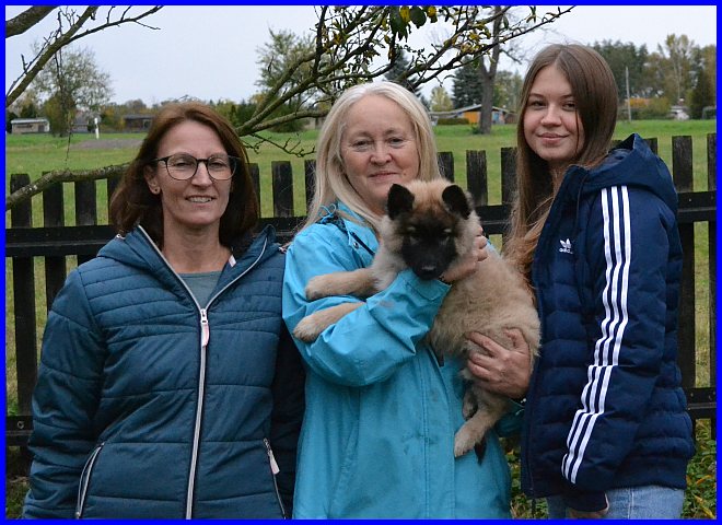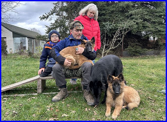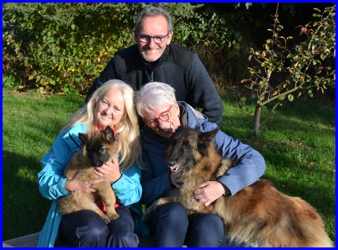 Ein letztes Foto, alle strahlen, sind glücklich, ich auch! Denn ich weiß, meine zwei Mädels haben tolle neue Familien bekommen. Tamina wird ausgestellt werden und vielleicht eine Zuchthündin, wenn sie alle Voraussetzungen für die Zucht erfüllt und natürlich gesund ist, alle Auswertungen in Ordnung sind. Thayet wird ebenfalls ausgestellt werden, ich werde sie definitiv wieder sehen!!! Sie wird sportlich geführt werden. Was genau, wird sich zeigen, wenn sie das Alter erreicht hat. Und sie wird ein Reitbegleithund, toll für jeden Belgier. :-)