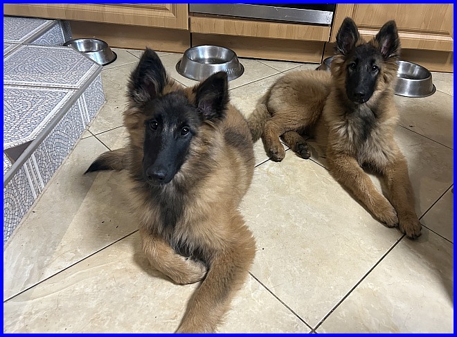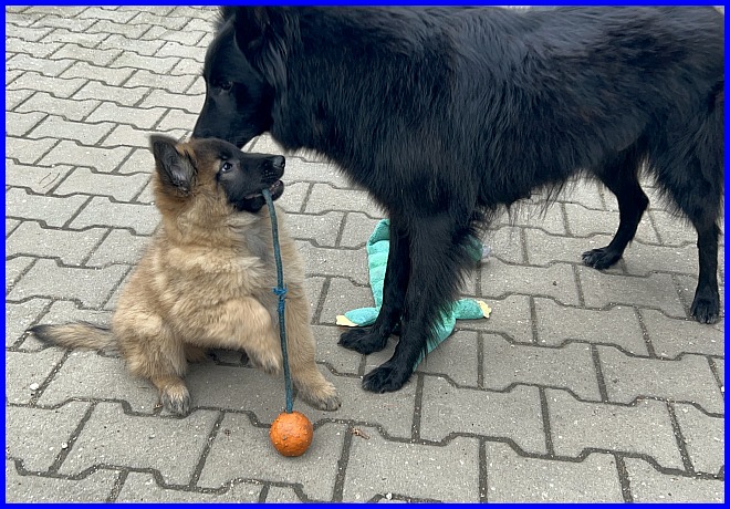 Es ist der 28.12.2023, Tiara links und Tiffany rechts, am nächsten Tag sollte eine der Beiden ihre zukünftige Familie kennen lernen. 16 Wochen waren sie nun schon alt und endlich hatte mich die Familie gefunden, der ich ein Mädchen anvertrauen würde. Bis zu dem Zeitpunkt hatte ich ständig geschwankt, wusste nie sicher welche ich behalten wollte. Beide sind tolle junge Hündinnen, sehen sich sehr ähnlich, ich liebe beide sehr, jede hat Vor - und Nachteile... Jetzt war es soweit, eine Entscheidung musste her, ich entschied mich für Tiara. Aber wenn Tiffany absolut kein Interesse an der neuen Familie gezeigt hätte, dann wäre sie zuhause geblieben.