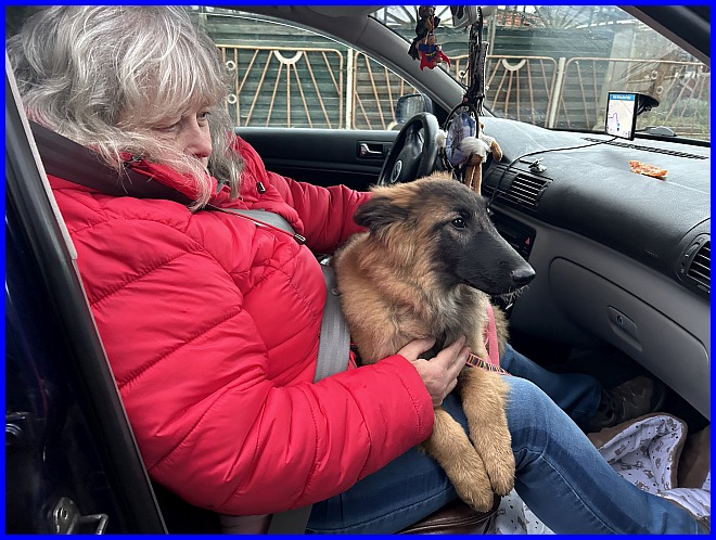 Der Tag X, der 06.11.2023 Texas wurde abgeholt, aber Tornado freut sich fast noch mehr, würde am liebsten auf Susannes Schoß klettern. |