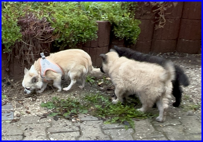 Leider ist das Foto etwas unscharf, aber ich finde es sooo süß, wie die Zwei zusammen hinter Holly herdackeln.