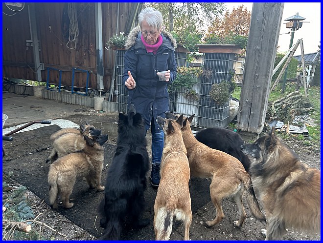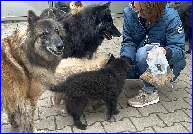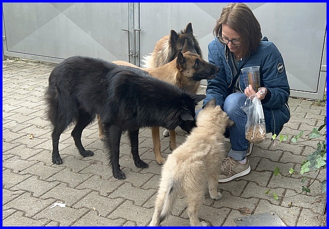 Am 02.11.2023 war dann der große Tag, Thayet wurde abgeholt. Bei so einer großen Tüte Leckerlis kommen natürlich alle meine Hunde, sich eine Portion abzuholen.