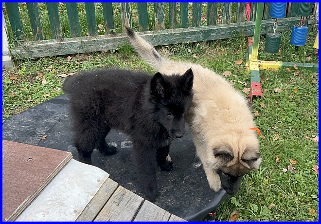 Es stand schon am Tag der Geburt fest, die kleine Gröni Hündin wird zu Thomas und Andrea ziehen. Sie war ja der einzige Groenendael in diesem Wurf. Als ob sie es gewusst hat, ist doch ein total süßes Bild!!!