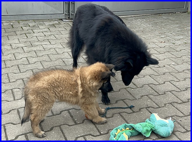 Viktoria musste Ina natürlich genau abchecken. Sie ist eine sehr fürsorgliche Mutter, passt sehr genau auf ihre Welpen auf, vor allem wenn fremde Menschen in ihrem Welpen Kindergarten sind.