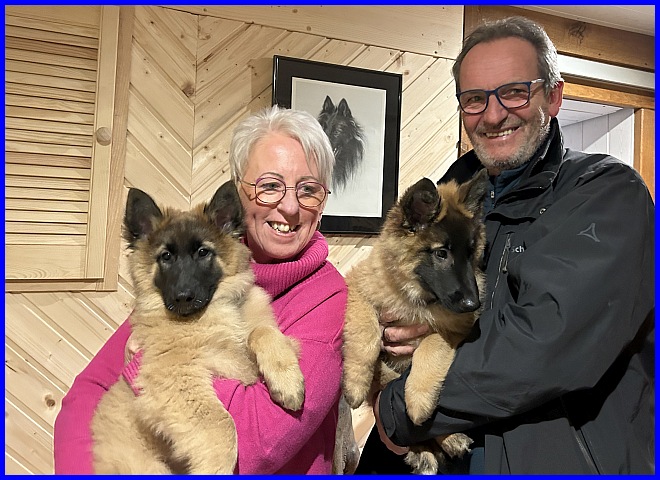 Ein wunderschönes Bild, Farouche sitzt so stolz da, der kleine Texas schaut natürlich zu seinen Geschwistern :-) und Ihr Zwei, Susanne und H.D. strahlt übers ganze Gesicht.