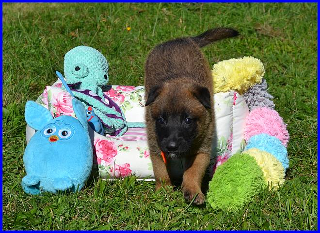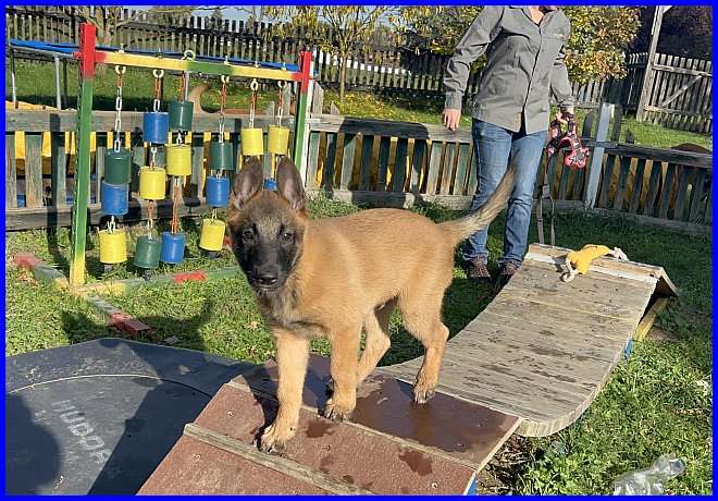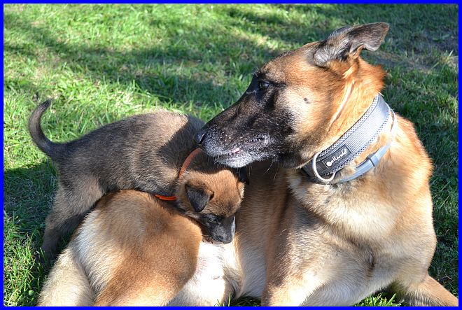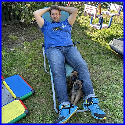 Sandra hat die Welpen, die fertig waren, eingesammelt und mit ihnen im Welpengarten gespielt. Ich habe Euch Beide gut beschäftigt "grins"
