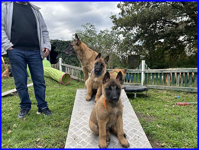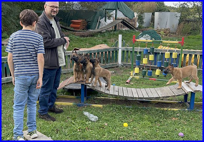 Am 10.10.2024 wart ihr ein zweites Mal bei uns zu Besuch, da durften die Welpen inzwischen auch auf die Hängebrücke in ihrem Welpengarten. Ja, die Entwicklung ist rasant in den ersten acht Wochen.