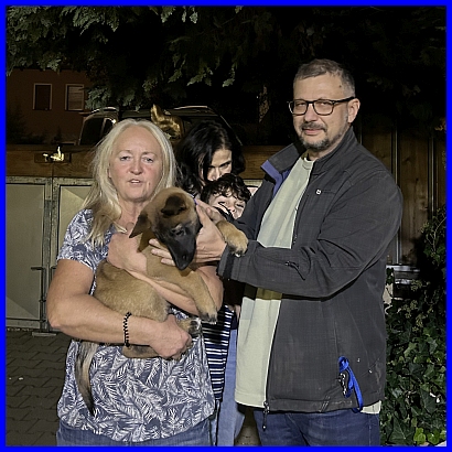 Am 19.10.2024 war der große Tag, Uranos durfte ausziehen. Arkani war schon auf großer Fahrt, ja , hier fehlt schon ein Welpe, sind nur noch fünf. Zur Begrüßung gab es für alle Leckerli, die Welpen hatten die ersten Stückchen für sich ganz alleine...