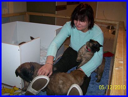 Später kamen dann noch unsere Pudelgeschwister in den Welpenkindergarten. Sie sind zwar vier Tage jünger und viel kleiner als wir, aber dennoch können wir prima mit einander spielen. |